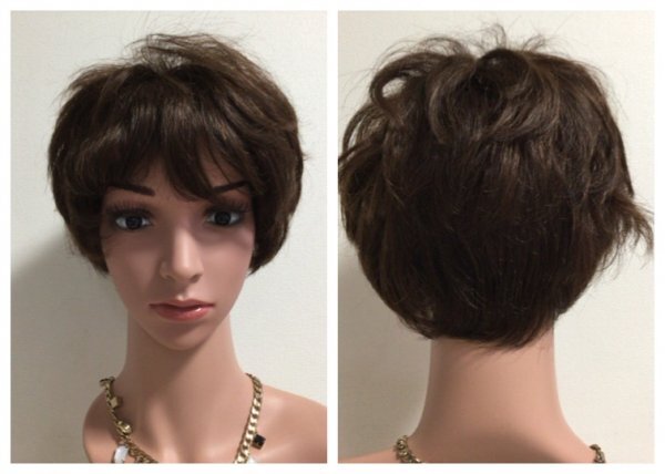 - WG3-2 人毛100%ハンドメイドウイッグ 栗色 ショート ボリュームアップ 白髪隠しも