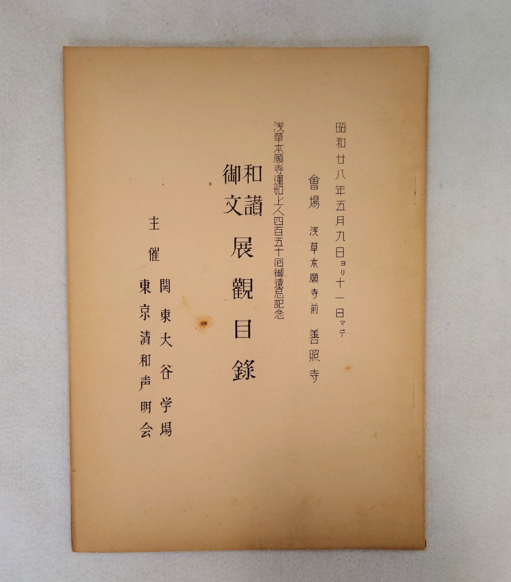 - 「和讃御文展観目録」1冊 浅野長量 佐々木求巳 浅草本願寺前善照寺 関東大谷学場東京清和声明会 昭和28年刊|蓮如 浄土真宗 親鸞 声明 仏教