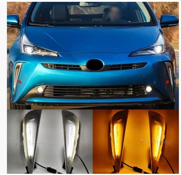 - トヨタ プリウス 50系 2019-2023年 LEDデイライト フロントフォグランプ ターンシグナル