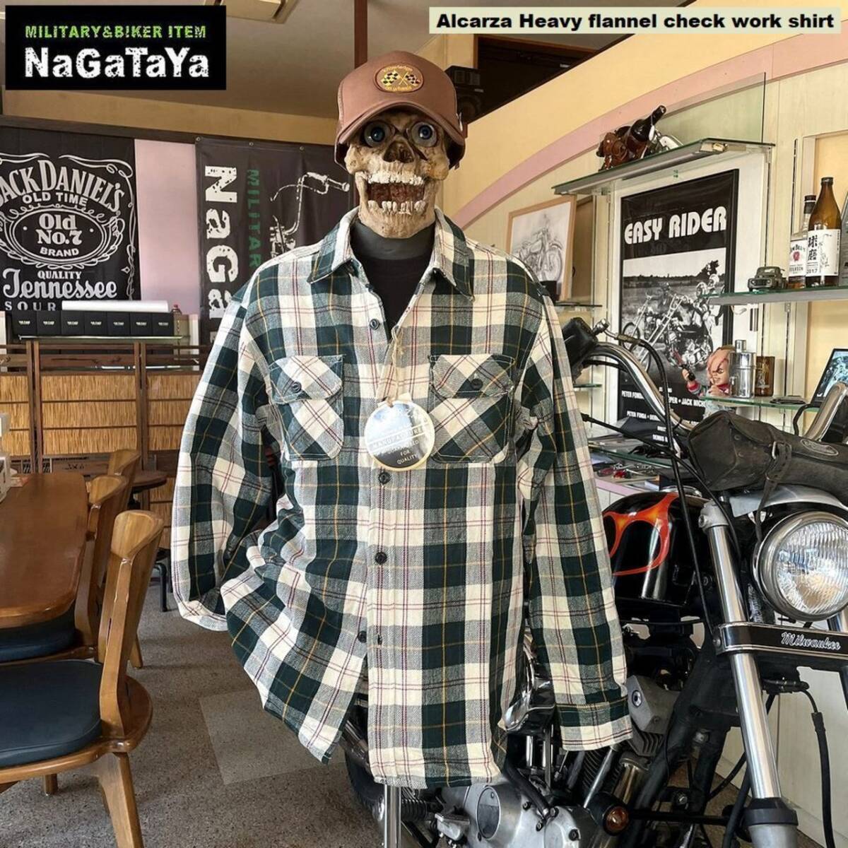 > ALCARZA アルカーザ ヘビーネルチェック ワークシャツ タータンチェック柄 グリーン XLサイズ アメカジ バイカー ストリート キャンプ