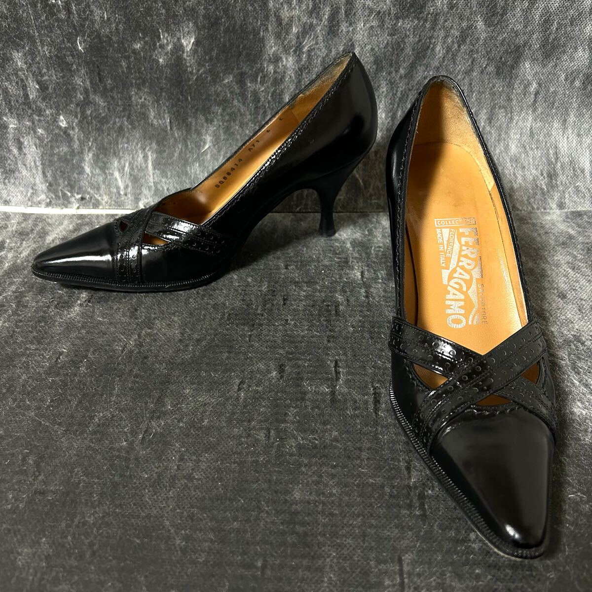 - Salvatore Ferragamo サルバトーレ・フェラガモ パンプス ヒールパンプス レザー 6C 23.5cm相当 ブラック *EO