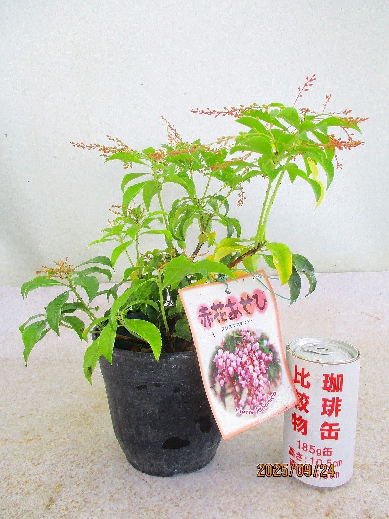 - [緑の市場]赤花馬酔木 クリスマスチェアー(91701黒丸プラ鉢)全高:30㎝*同梱包対応「まとめて取引」厳守*80サイズ送料明記
