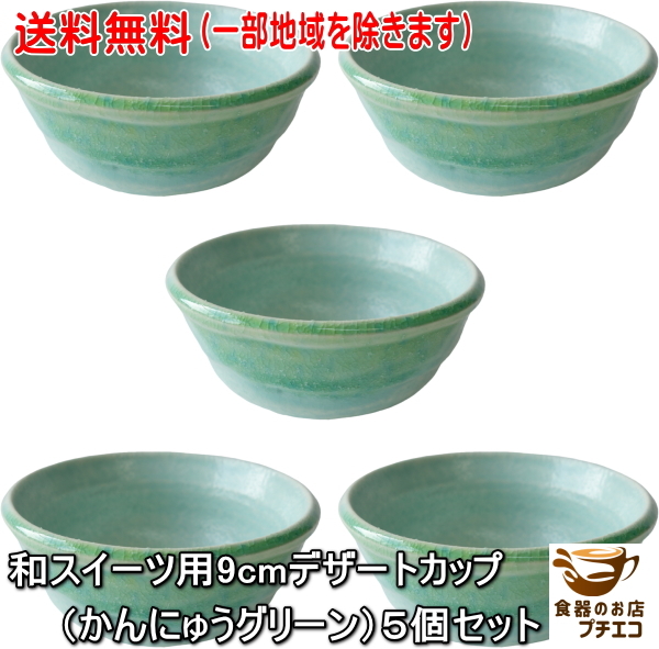 > 送料無料 和スイーツ 9cm デザートカップ かんにゅうグリーン 5個 セット 電子レンジ可 食洗器対応 美濃焼 日本製