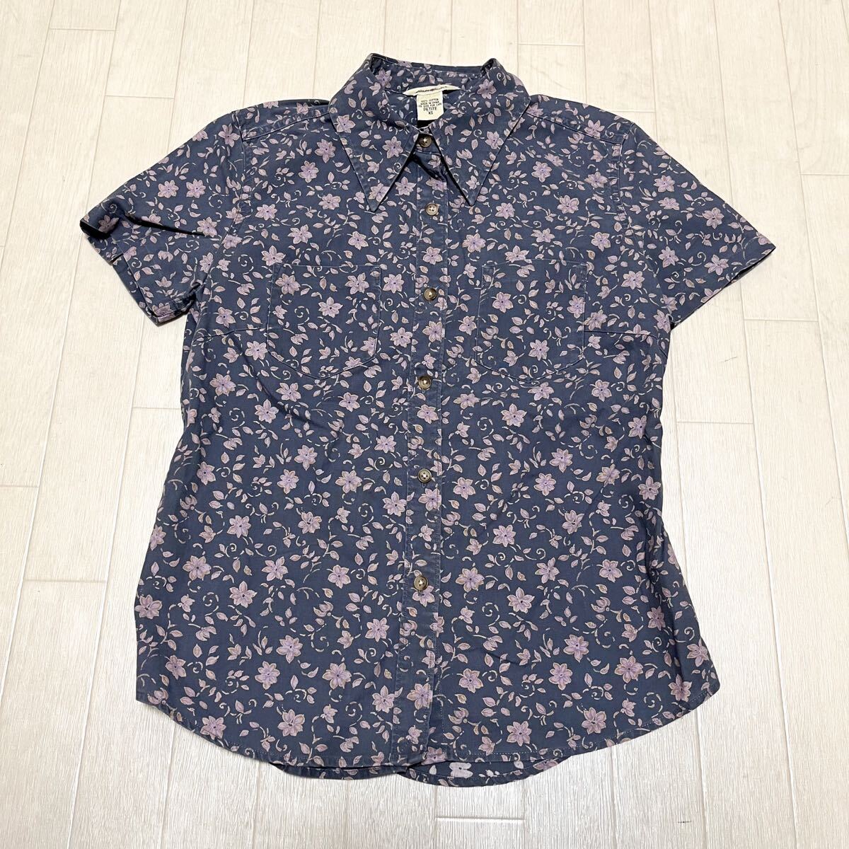 - 和849★ Eddie Bauer エディーバウアー 半袖 ボタンシャツ 花柄 総柄 XS ブルー レディース