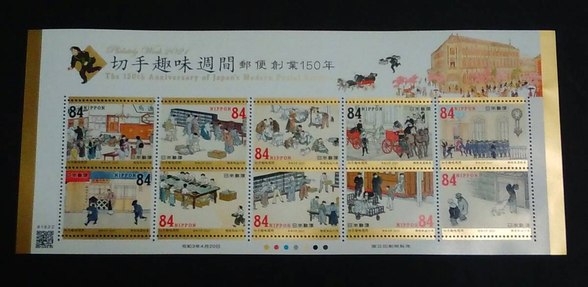 - 2021年・特殊切手-切手趣味週間(郵便150年の歴史)解説書付シート