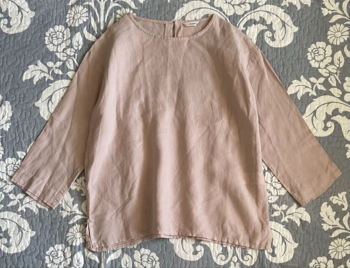 > FABRIC'S 麻100% トップス 薄ピンク ブラウス バックボタン プルオーバー 肩落ち 長袖 リネン ファブリックス 日本製