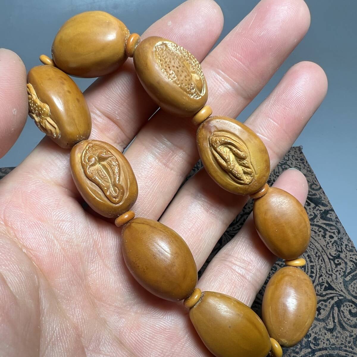 > 旧家蔵出し オリーブの核細密彫 生命之源 手串 造型精美 裝身具 経年加持 極細工 置物擺件 美術品 旧家蔵出 旧家供養品