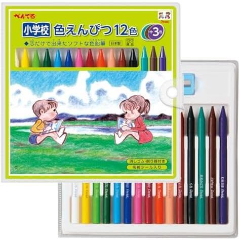 - ソフトケース_12色+3色 ぺんてる 小学校色鉛筆 GCG1-12P3 12色+3色
