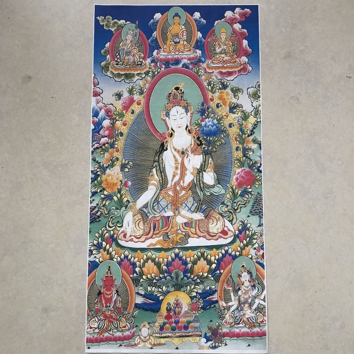 - 仏教美術 白度母観音菩薩 仏教 丁観鵬 中国水墨画 表装なし 画仙紙 画芯 玄関画 鑑賞 装飾 郵便発送 70*35cm zh965