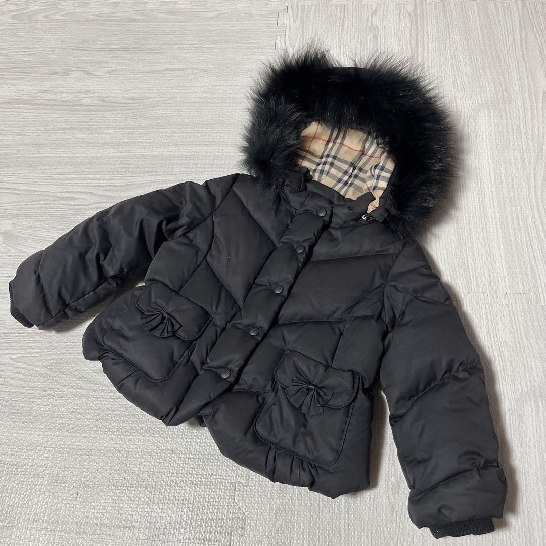 - 極美品 Burberry London バーバリーロンドン ダウンジャケット リアルファー 100 キッズ リボン付き 女の子 ノバチェック 上着