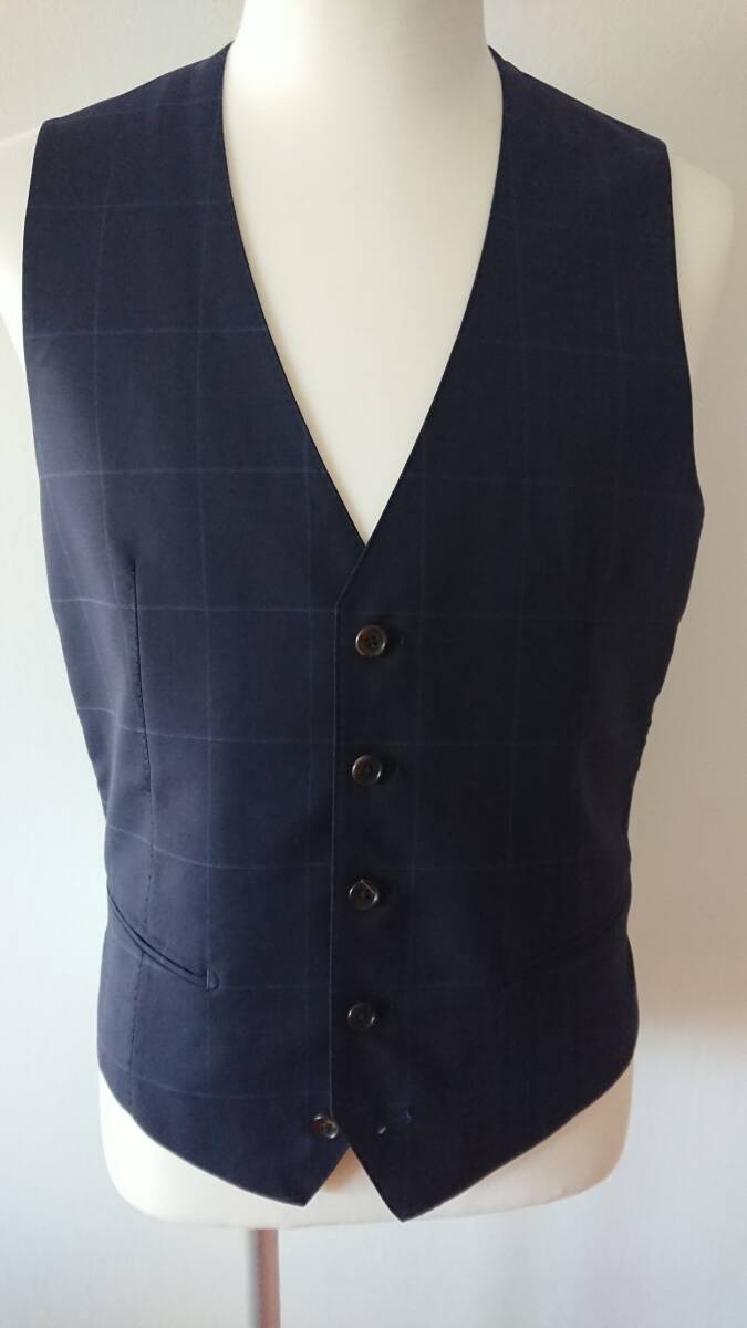- コムサメン ウール地ウインドペンチェックジレ 46 M 紺ベスト