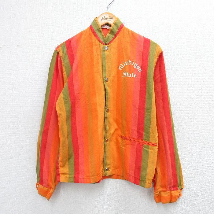 > M/古着 チャンピオン Champion 長袖 ジャケット メンズ 60s ランナーズタグ ミシガン コットン オレンジ他 ストライプ spe 25sep25 中古 ア