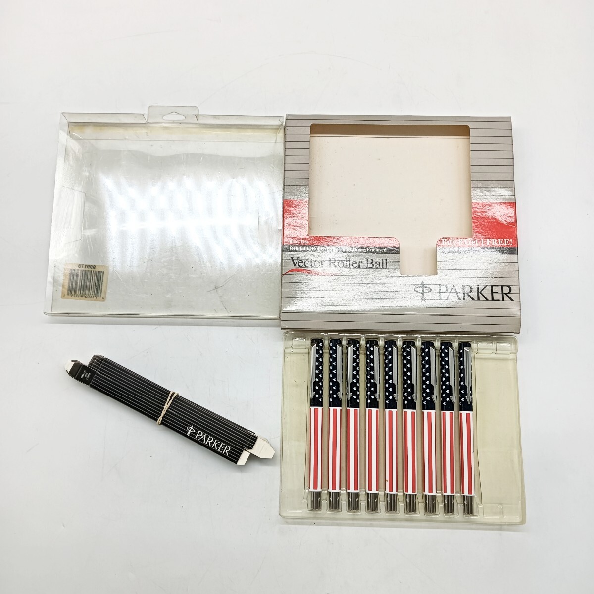 > 【A4077】未使用品 PARKER パーカー VECTOR ROLLER BALL ボールペン 星条旗 9本セット 筆記用具 文房具 筆記可