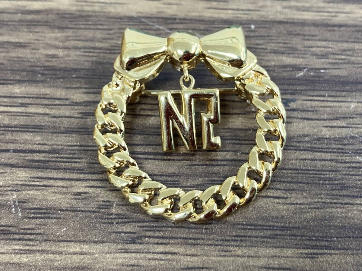 - ★20278 ニナリッチ/NINA RICCI サークル リボン モチーフ ブローチ ゴールド色★