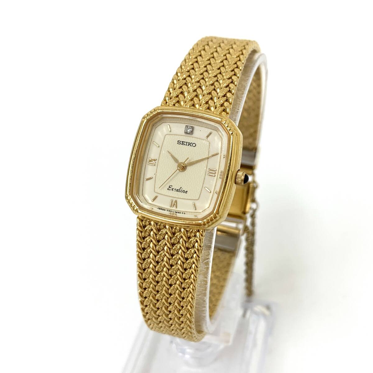 - Z1160△ 1円~ SEIKO セイコー Exceline エクセリーヌ 1P ダイヤ 7321-6600 GP×SS QZ アイボリー文字盤 レディース 腕時計 稼働 動作確認済