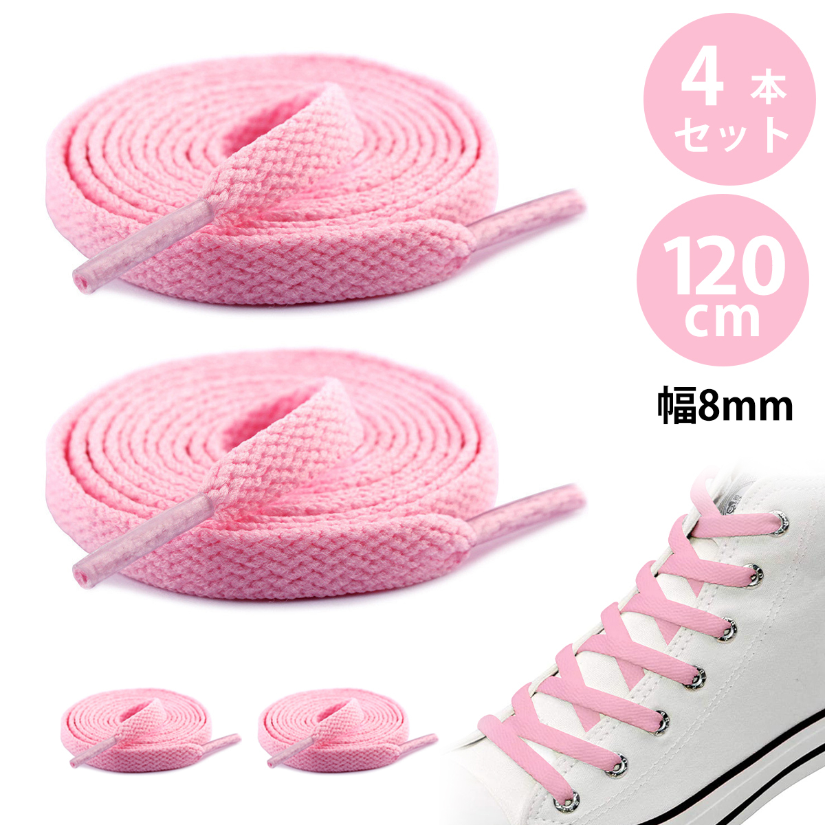 - 【4本入り】靴紐 靴ひも くつひも シューレース スニーカー 紐 平紐 0.8*120cm フラットシューレース 5~6ペアの穴に対応;J5505-2ps;