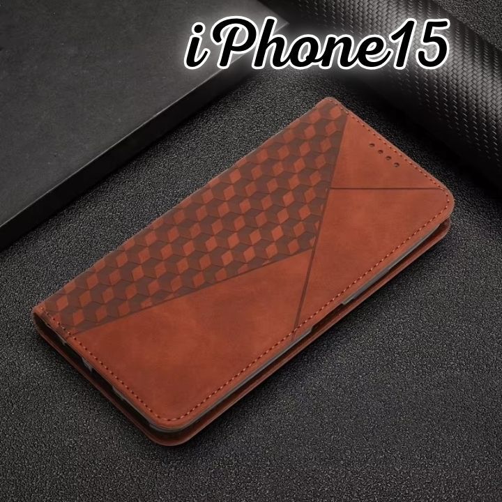 - iPhone15 アイフォン ブラウン手帳型ケース カード3枚収納 紙幣ポケット 衝撃吸収バンパー付き