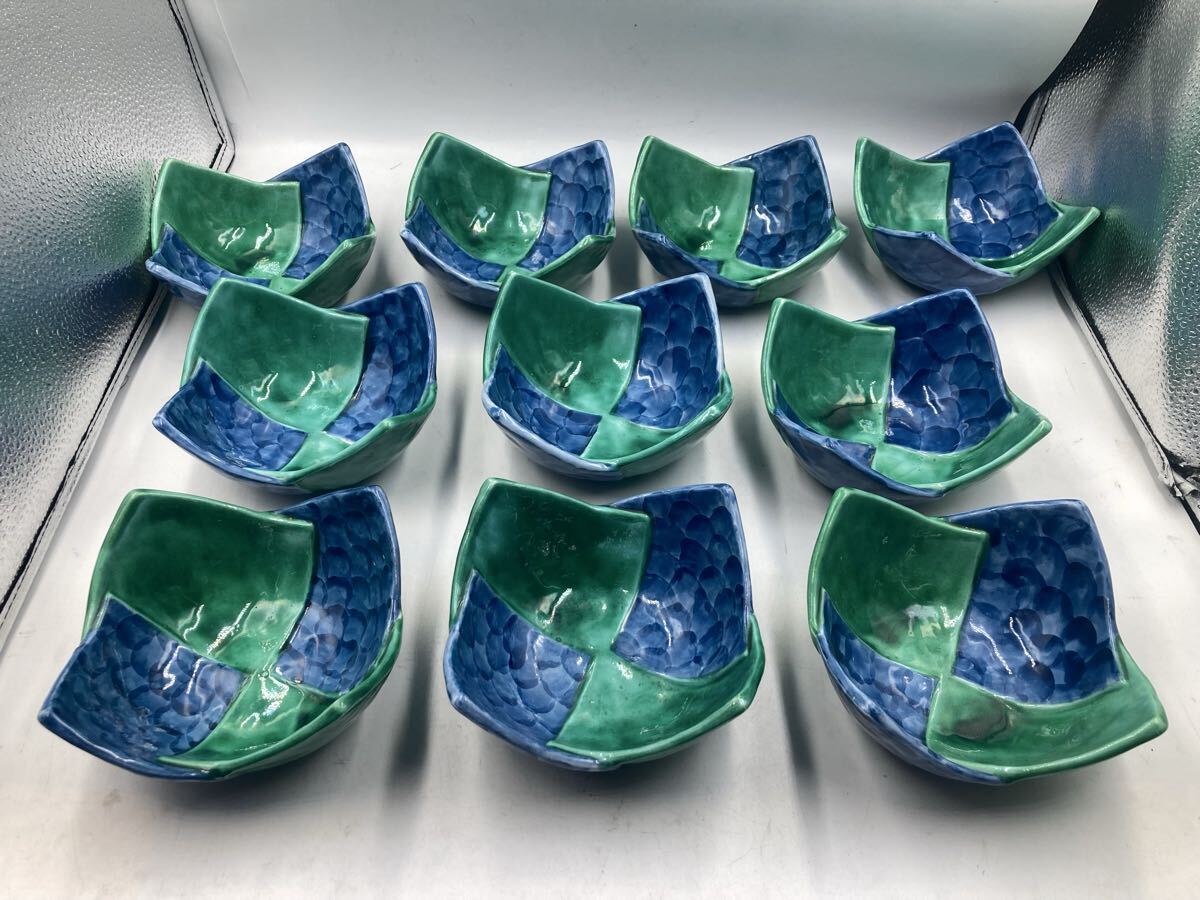 - 今回限り 10客 乾山 写 市松 向付 京焼 日本料理 懐石料理 刺身皿 先付け 今回限り最後の在庫です