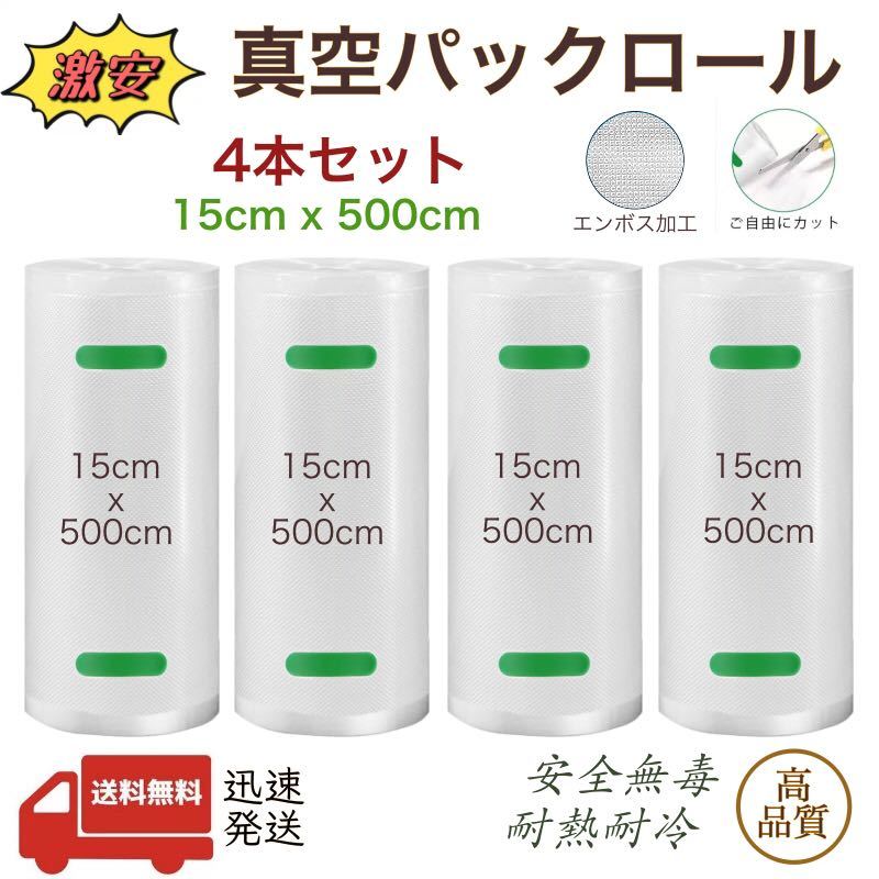 - 真空パックロール エンボス加工 真空袋 真空パック機専用袋 ポリ袋 真空袋 脱気 密封 真空保存 15x500cm 4本 業務用 家庭用