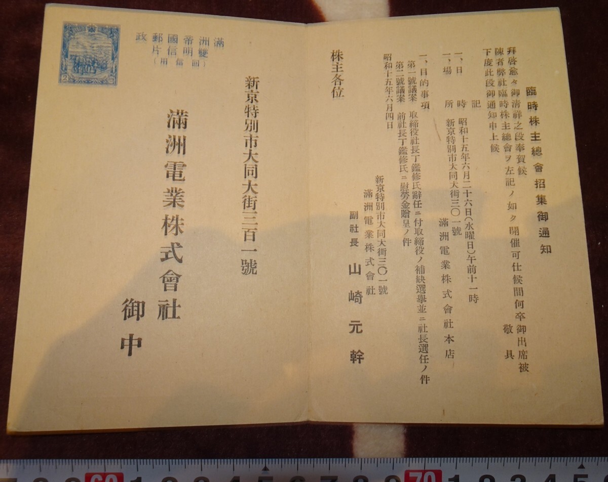 - rarebookkyoto m421 満洲 帝国 南満洲鉄道 満洲電業株式会社 委任状 絵葉書 1941 年 新京 大連 中国