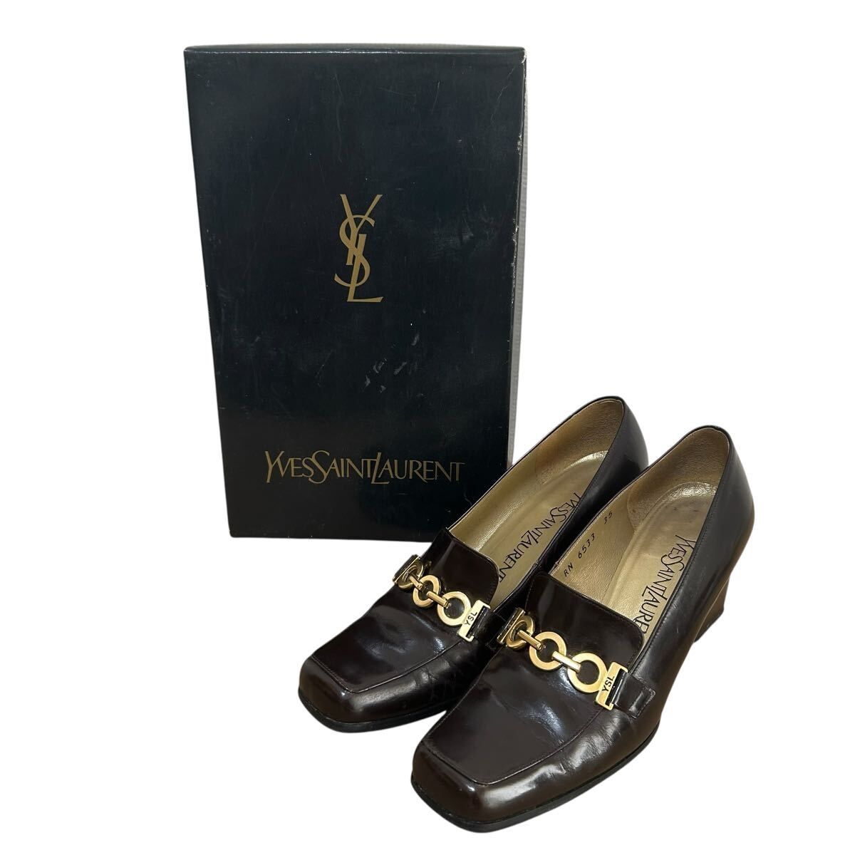 - 【箱付き】YVES SAINT LAURENT ヒールビットローファー レザー ブラウン 表記35(22.5cm)