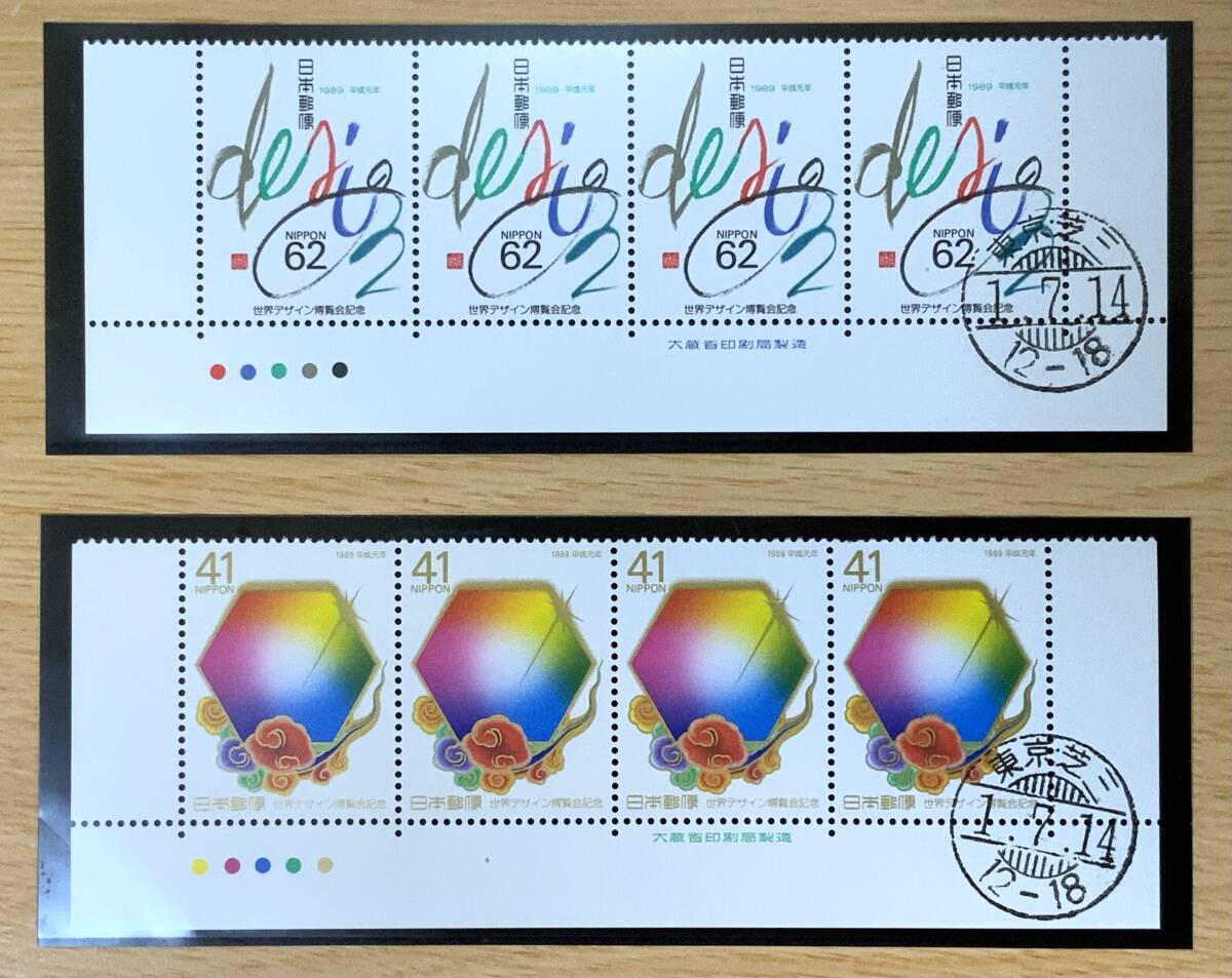 - 世界デザイン博覧会記念 2種 ストリップ4枚 銘版カラーマーク付 K488