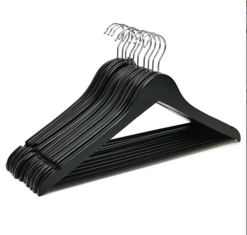 - 上質木製ハンガー 衣類ハンガー 20本セット 洋服ハンガー すべらない 肩部分に凹み付き スーツ ジャケット用 ブラック