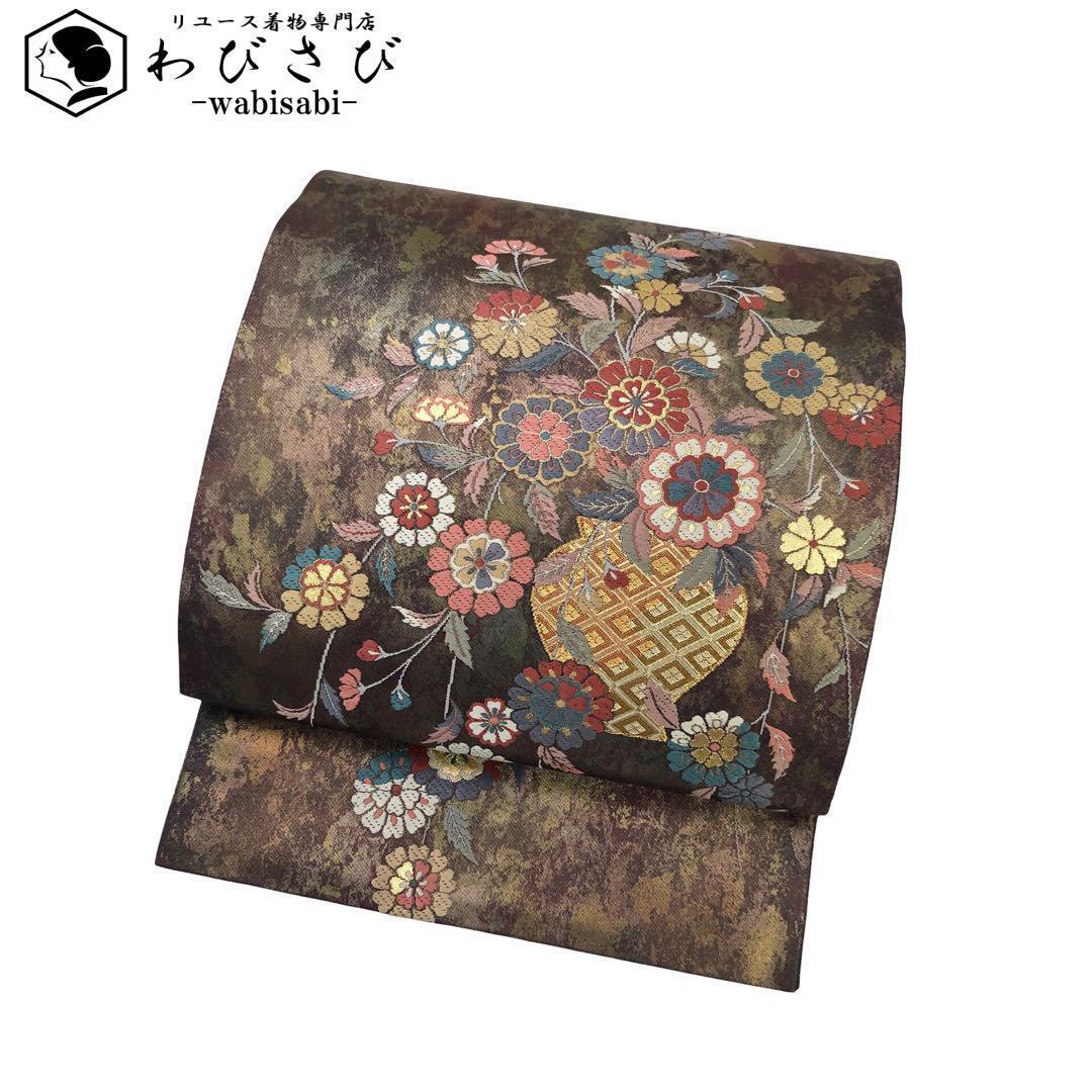 - 袋帯 花瓶に美しい花 花菱模様 金糸 ガード加工 O-4526 着物 きもの kimono 和服 和装 中古 リサイクル着物 【送料無料】