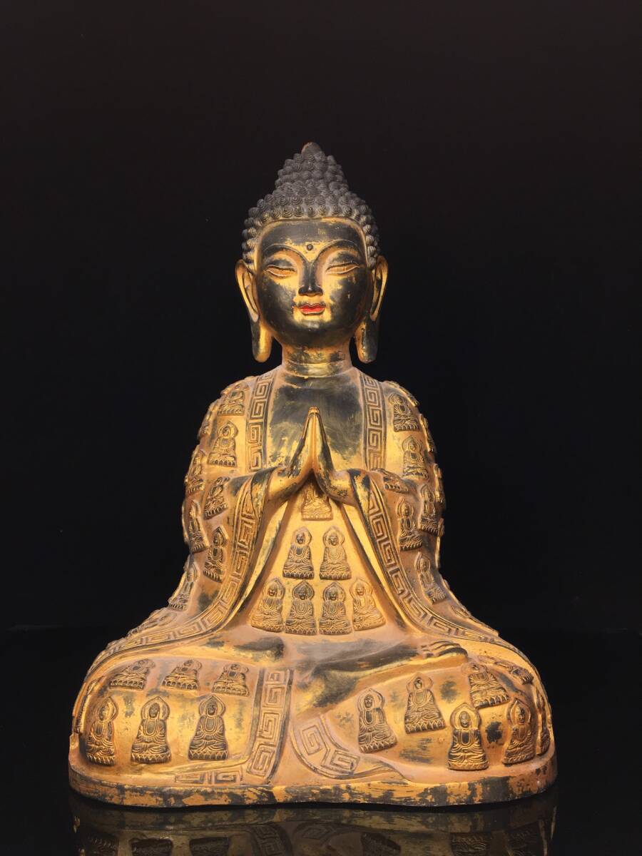 - 『館蔵珍品 銅製 塗金 釋迦牟尼 仏像 宗教 仏教古美術 供養品』稀少珍蔵品 古賞物 貴重物品 収蔵品 中国古美術 時代物 古董品