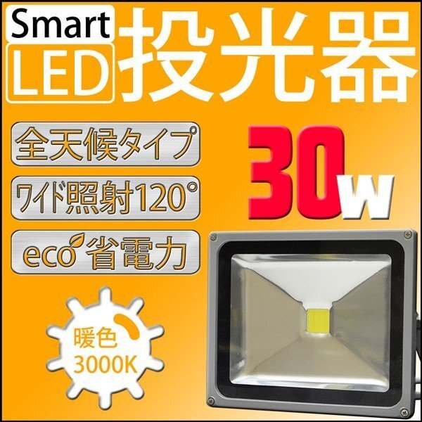 - LED 投光器 30W 300W相当 防水 3mコード付 PSE取得済 AC100V 広角 高輝度 防水 屋外店舗照明 作業灯 ライト 照明 昼光色 白色 暖色 電球色