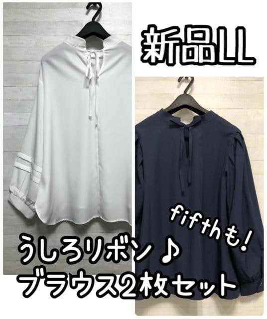- 新品☆LL♪うしろリボンかわいい♪きれいめブラウス2枚♪ボリューム袖Q378