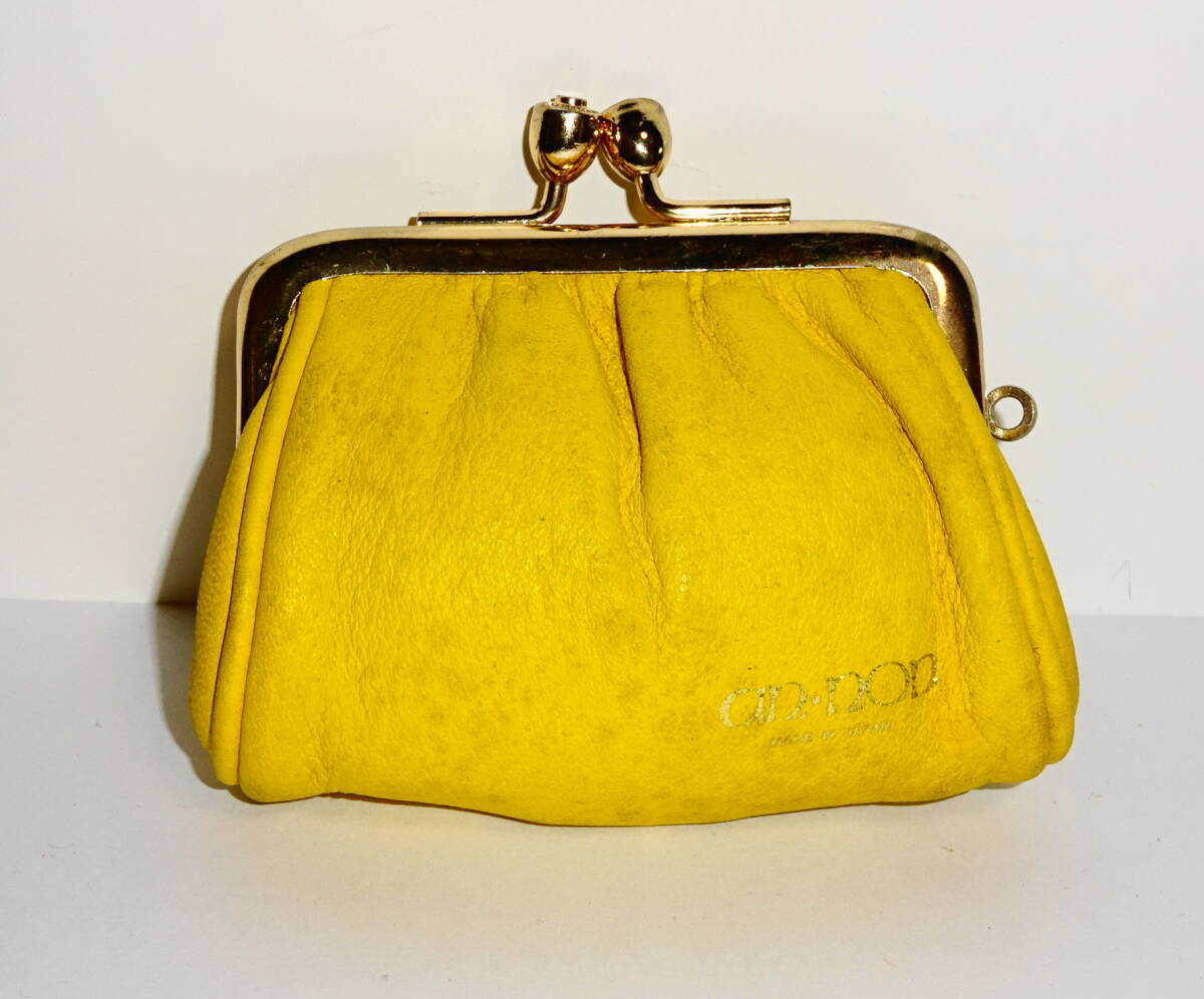 - 【100円~】an non 黄色 がま口財布 本革 イエローレザー コインケース 日本製