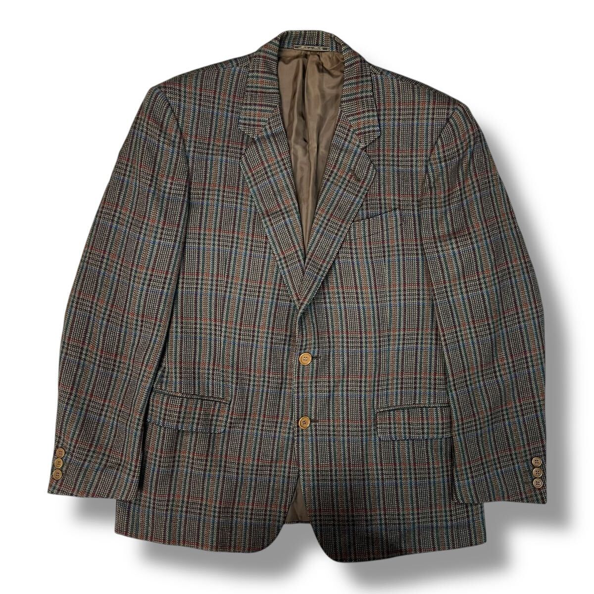 - (TK0928)【イタリア製】 BROWNGREEN テーラードジャケット ブレザー ツイード 総柄 ブラウン系 定番 ヨーロッパ 古着 52