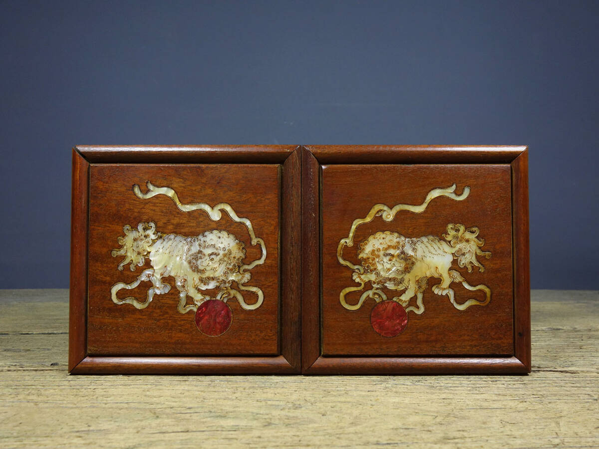 - 『館蔵珍品 花梨木 細密彫 事事如意 雙抽盒 置物 賞物』稀少珍蔵品 古賞物 貴重物品 収蔵品 中国古美術 時代物 古董品