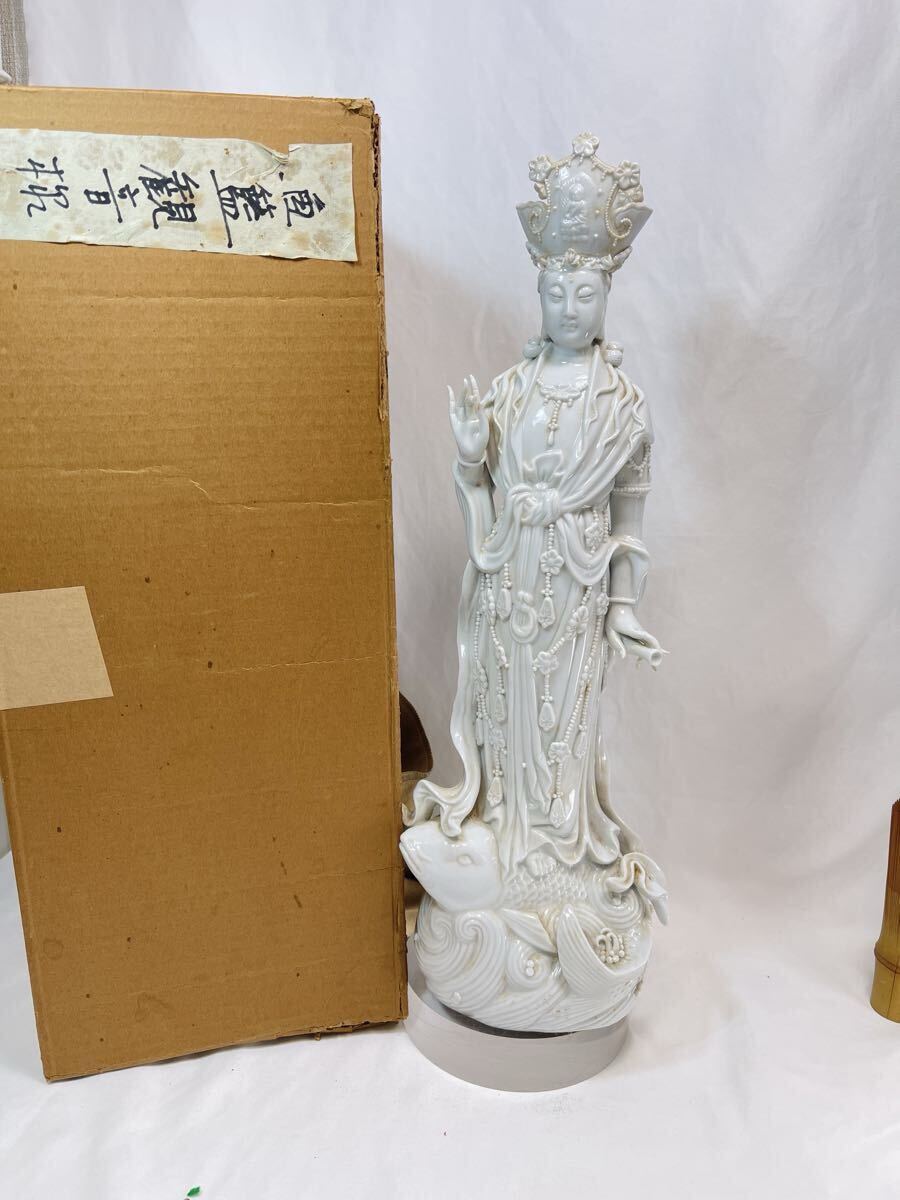 > 【B71】清時代 白高麗觀音像 「昭和十一年 ***北平**仏」底書 ダンボール箱付 觀音像 仏像 極細工 美品 仏教古美術 賞物 置物 中国古美術