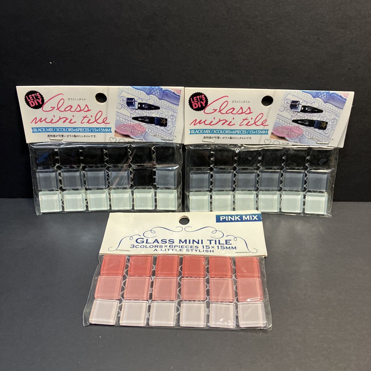 - 新品・送込み グラスミニタイル 3個セット 15×15mm 6個×3列 ブラックミックス+ピンクミックス ちょっとしたデコに!