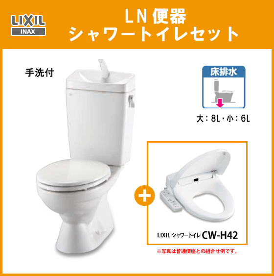 - 便器 LN便器(手洗付) シャワートイレ(脱臭機能付)セット C-180S,DT-4840,CW-H42 リクシル イナックス LIXIL INAX ★
