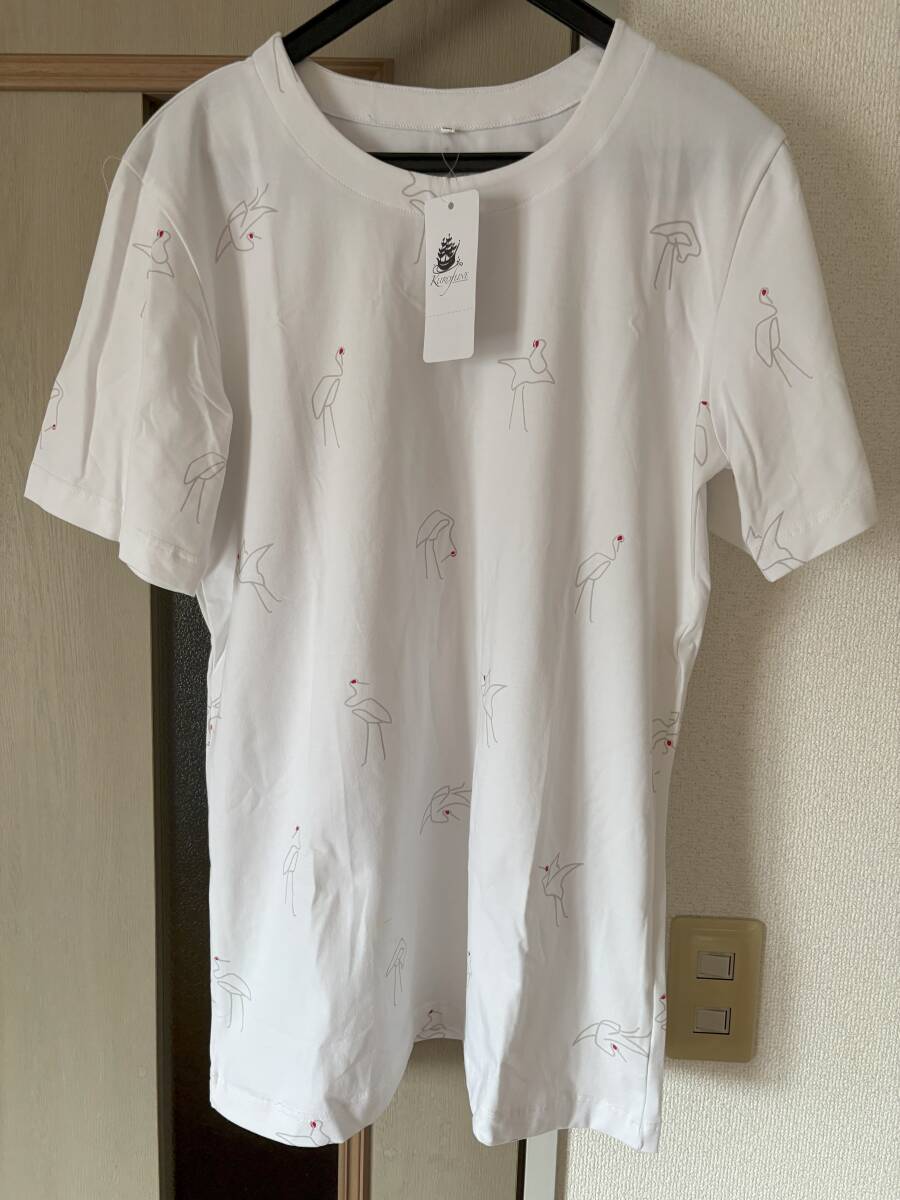> ★未使用 タグ付き 京都 くろちく Tシャツ 一筆 鶴 kurofune 半袖 白 ホワイト ストレッチ レディース XLサイズ