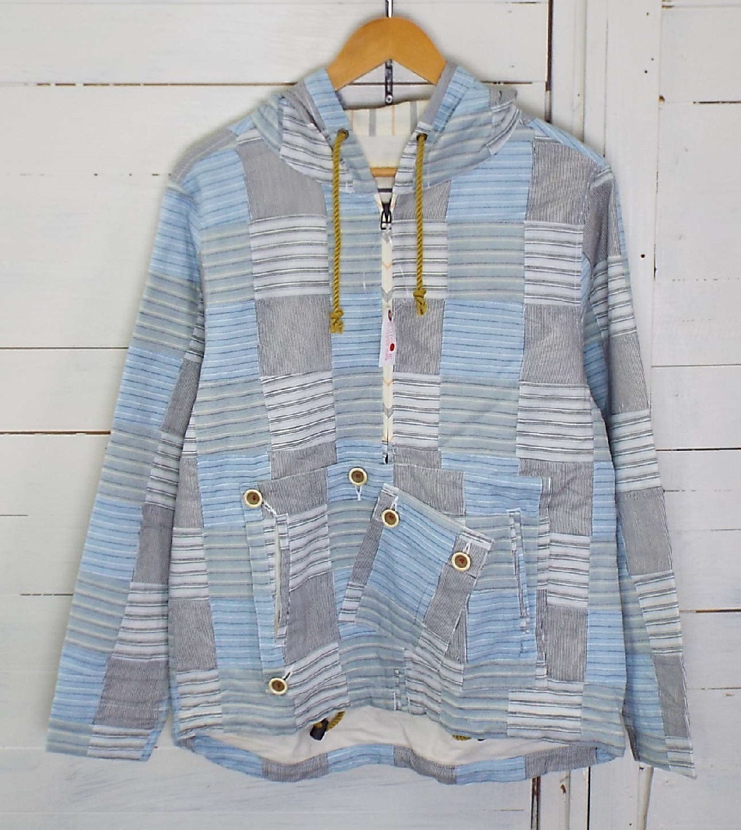 - T3009〇VOO(ヴォー)ジップアップパーカー アウター パッチワーク ブルー系 サイズ1 SAMPLE/サンプル品 品質タグなし