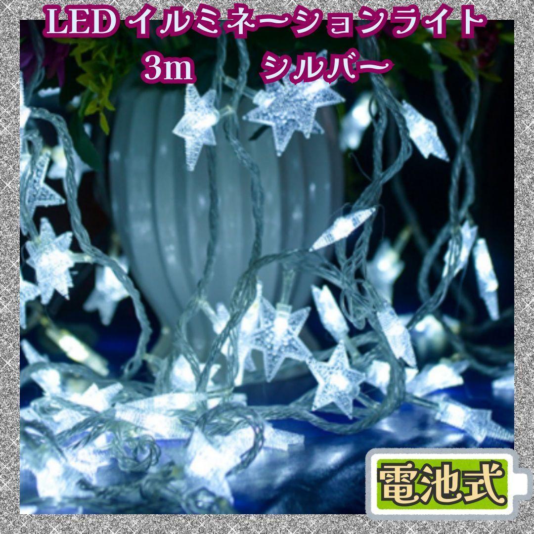 - イルミネーション LED ライト 3m 20LED 星型 電池 電飾 シルバー
