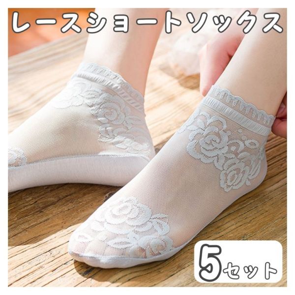 - レースショートソックス 白 シースルー ホワイト 花柄 5枚セット 靴下 浅履き