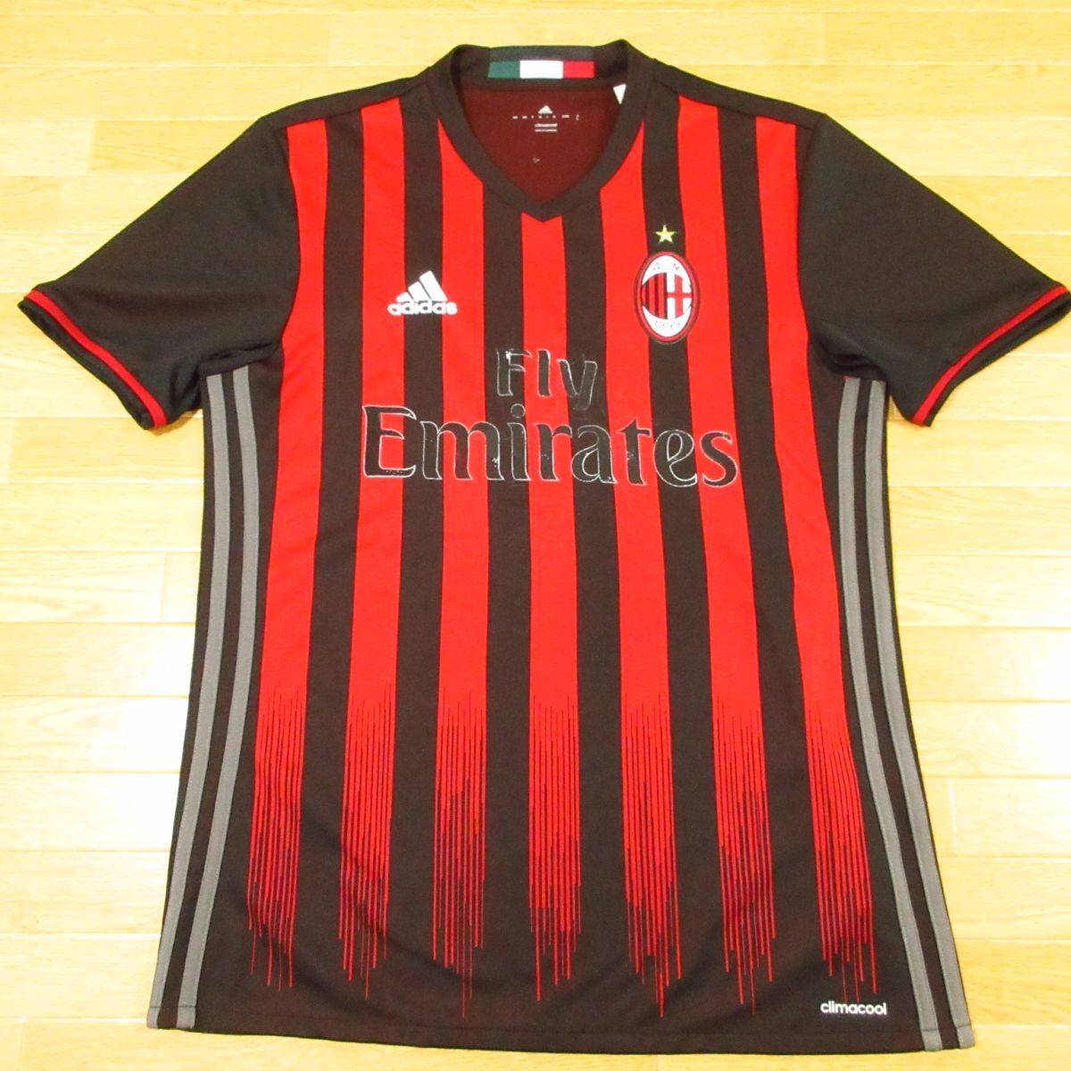 > ◎使用少なめ!ACミラン 2016-17年 ホーム adidas アディダス ユニフォーム ゲームシャツ ワッペン 刺繍 サッカー メンズ Lサイズ◆AU0881