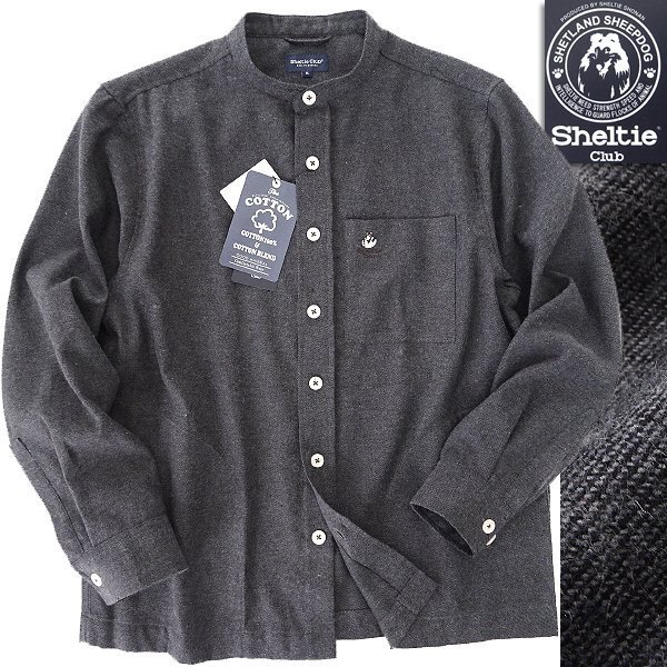 - 新品 シェルティークラブ 起毛 ツイル バンドカラー シャツ M 灰 【SH1443224_98_M】 Sheltie Club 秋冬 起毛 羽織り アウター