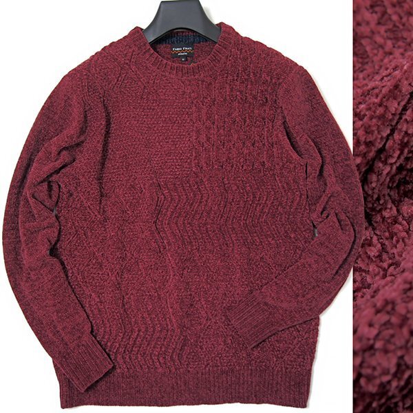 - 新品 ファビオフラーティ ランダム編み クルーネック モール ニット L 【SR32-1855_ワイン_L】 秋冬 メンズ セーター プルオーバー