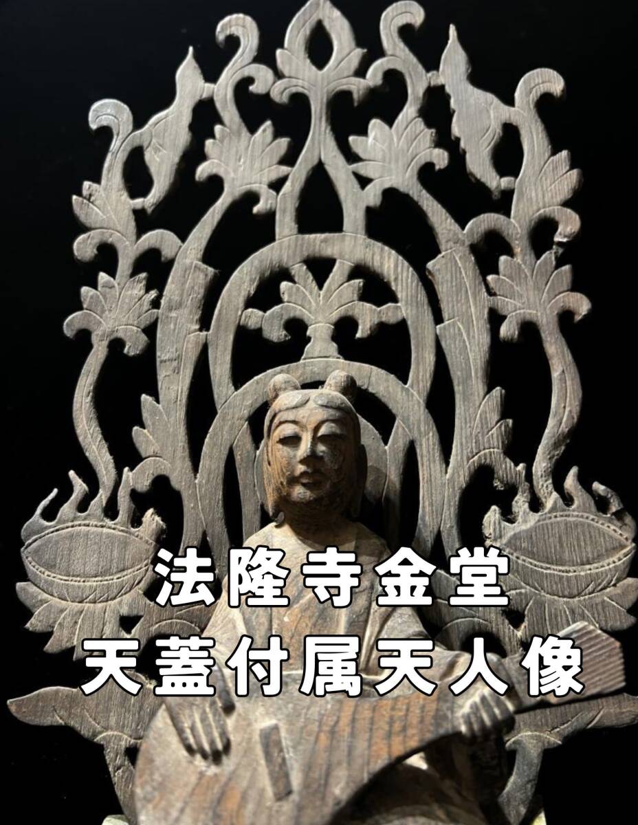 - 法隆寺金堂天蓋付属天人像 天女 仏像 法隆寺 天蓋天人摸 琵琶 天衣 火焔文 蓮華文 蓮華座 高55cm 仏教美術 古美術 観音 仏