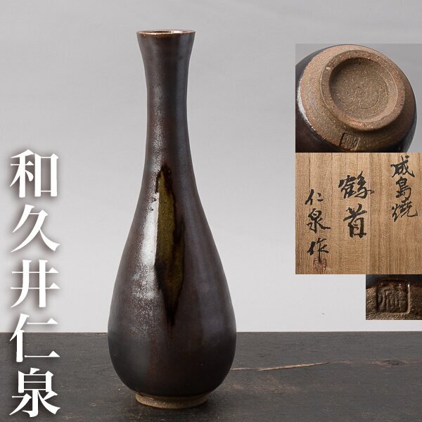 > 【千z0014】和久井仁泉 鶴首 花入 高さ約23cm 共箱 成島焼 和久井窯 花器 花瓶