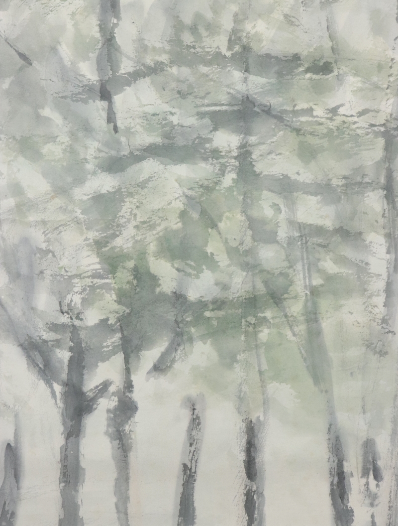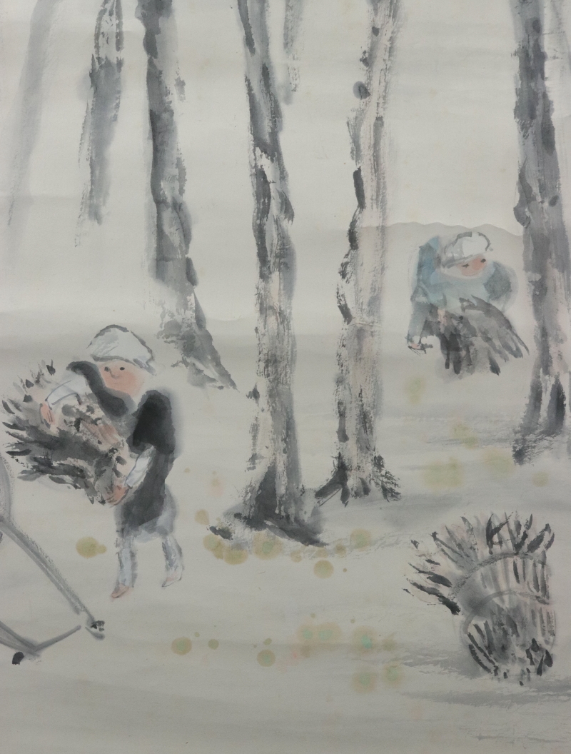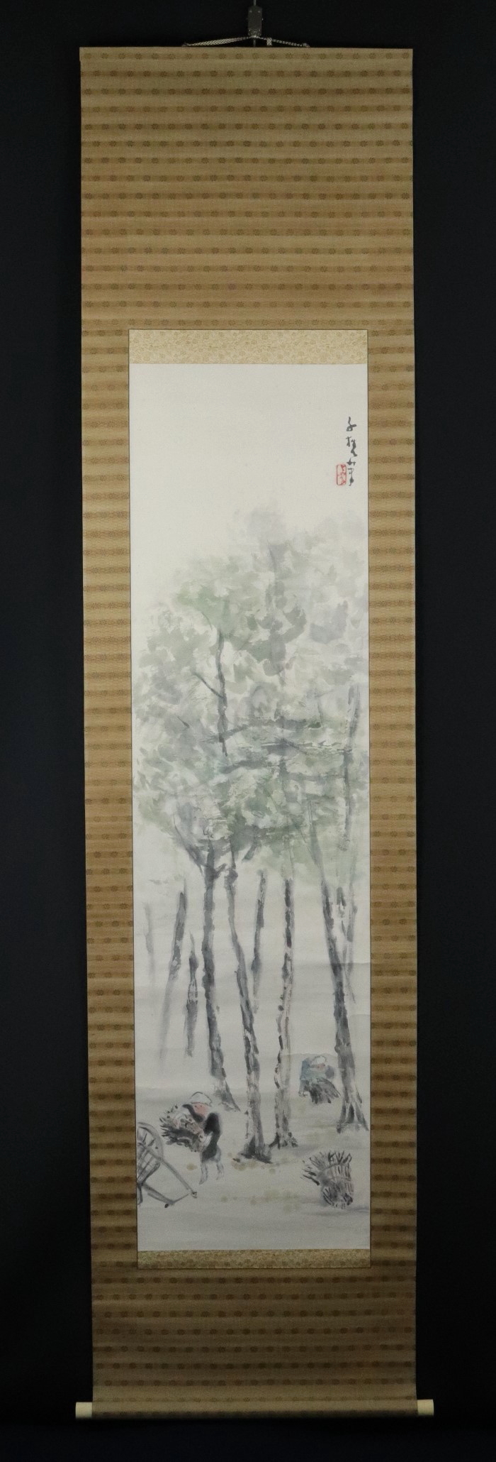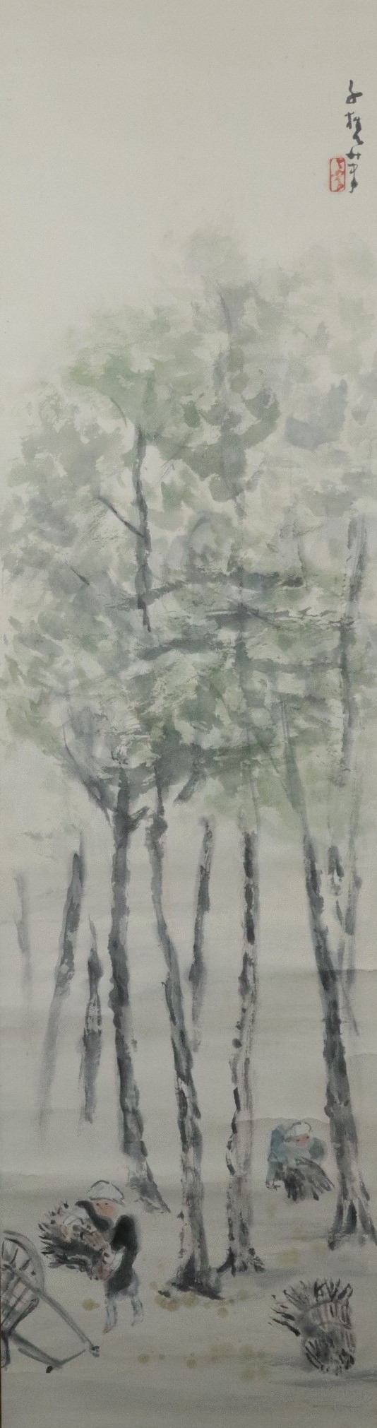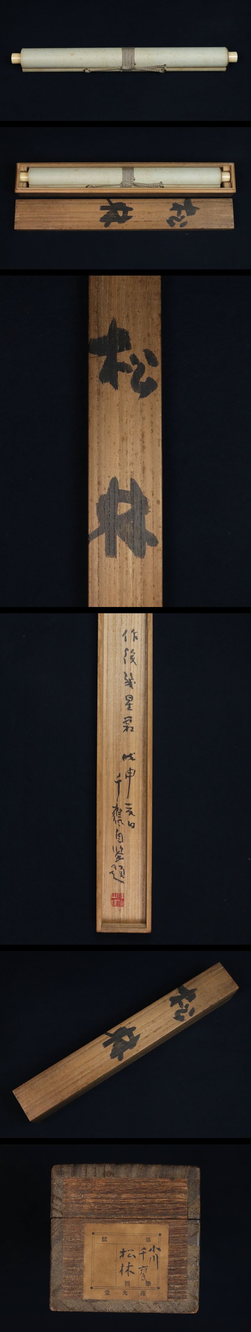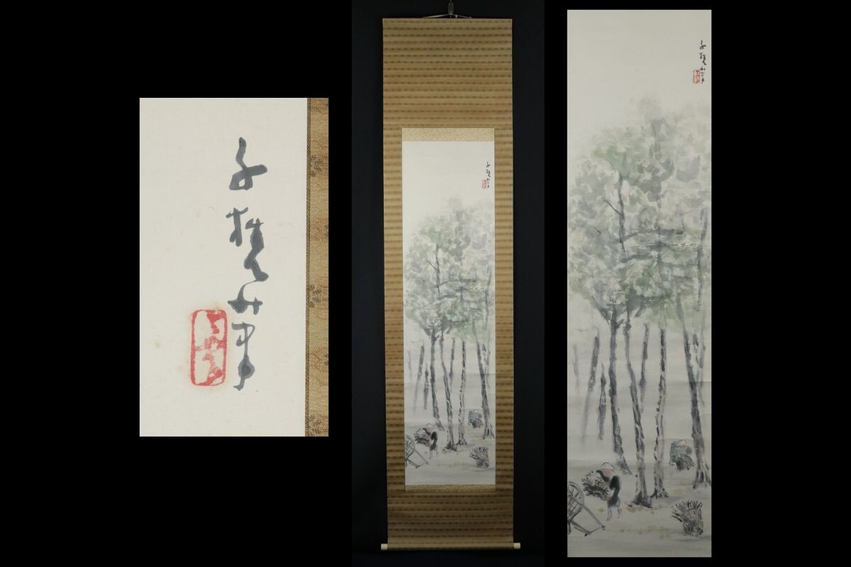 - 10810■【真作】小川千甕 松林図 肉筆 共箱 北村敬重・浅井忠師事 珊瑚会 日本南画院 掛軸