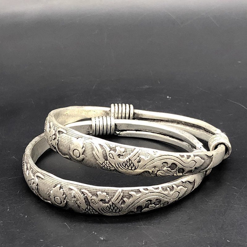 - 送料無料!珍品 旧蔵 超美品! 腕輪 竜鳳 龍鳳紋図 浮き彫り 竜鳳の腕輪 2個セット 装飾 収蔵 コレクション fgcq094