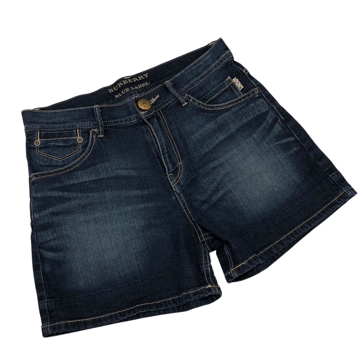 > 9NG003-56 BURBERRY BLUE LABEL バーバリーブルーレーベル ショートパンツ デニムパンツ ジーンズ ノヴァチェック ロゴ 刺繍 38 濃紺