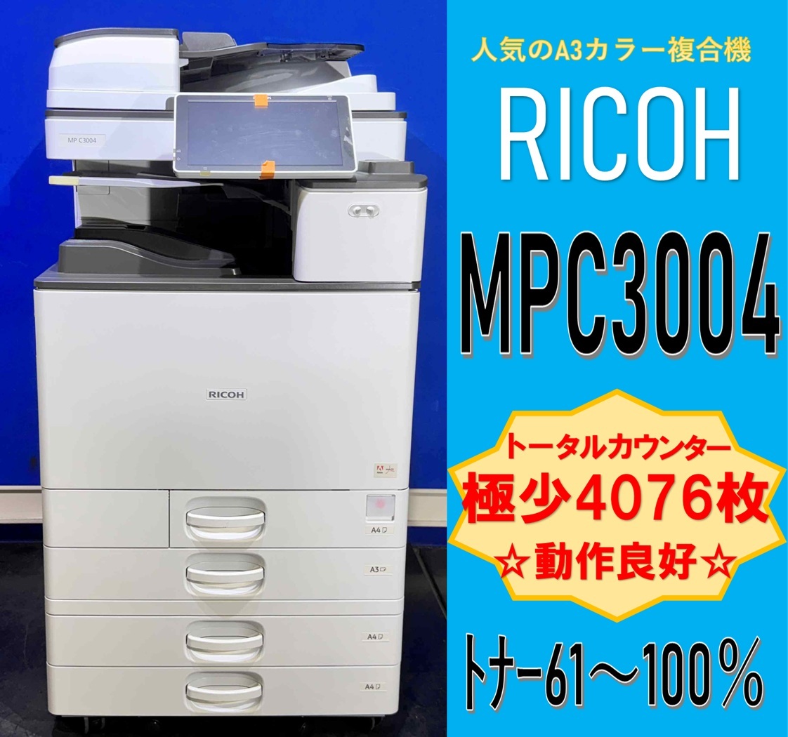 > 【越谷発】【RICOH】A3カラー複合機 ☆ MP C3004 ☆ 極少カウンター 4,076枚 ☆動作確認済み☆ (13271)